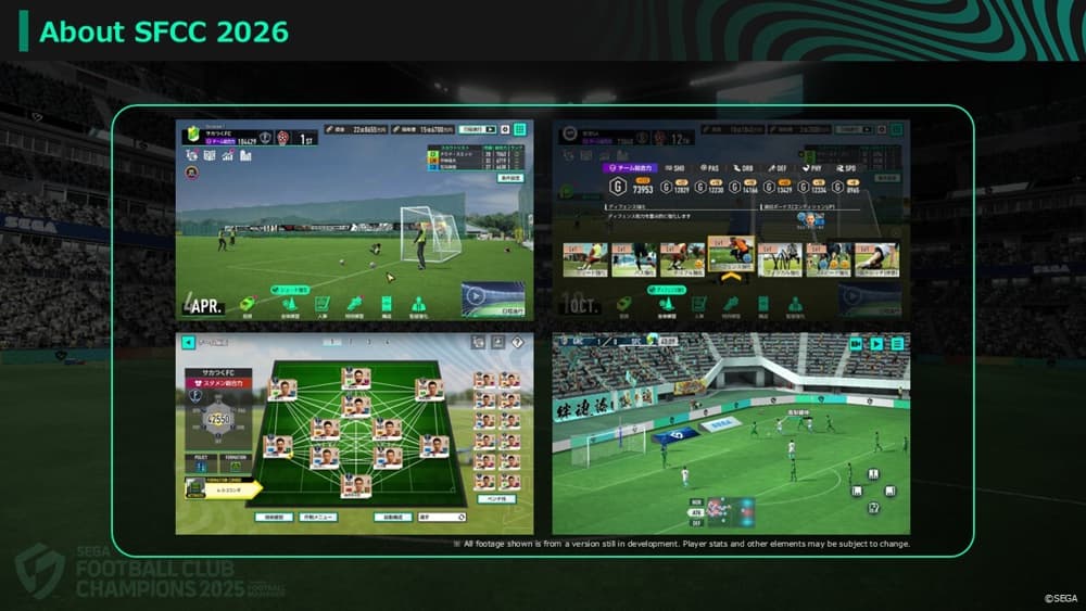 แง่มุมของการเป็นเจ้าของสโมสรและการบริหารทีมเป็นเรื่องสนุกสำหรับผู้เล่น และนั่นคือเหตุผลที่เกมประสบความสำเร็จในประเทศ เราต้องการนำความรู้สึกเดียวกันนั้นมาสู่ SEGA Football Club Champions 2026