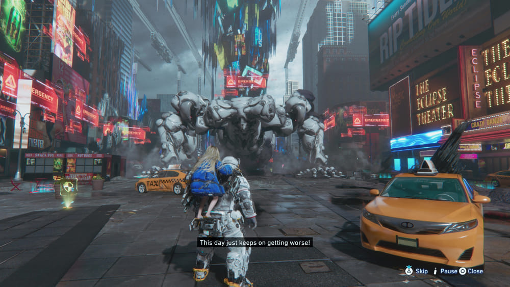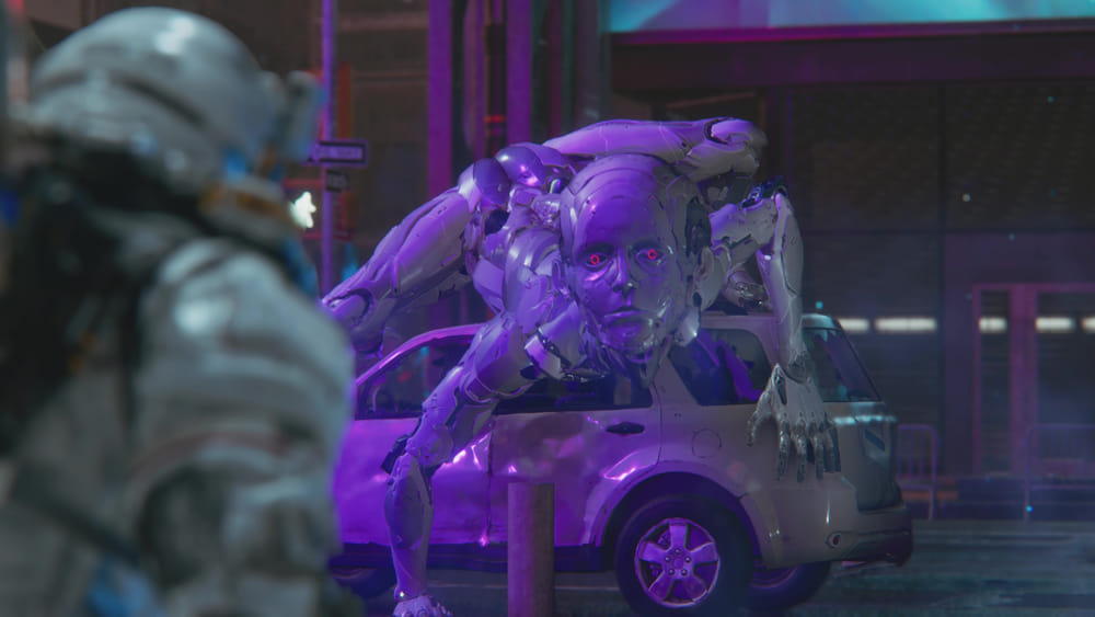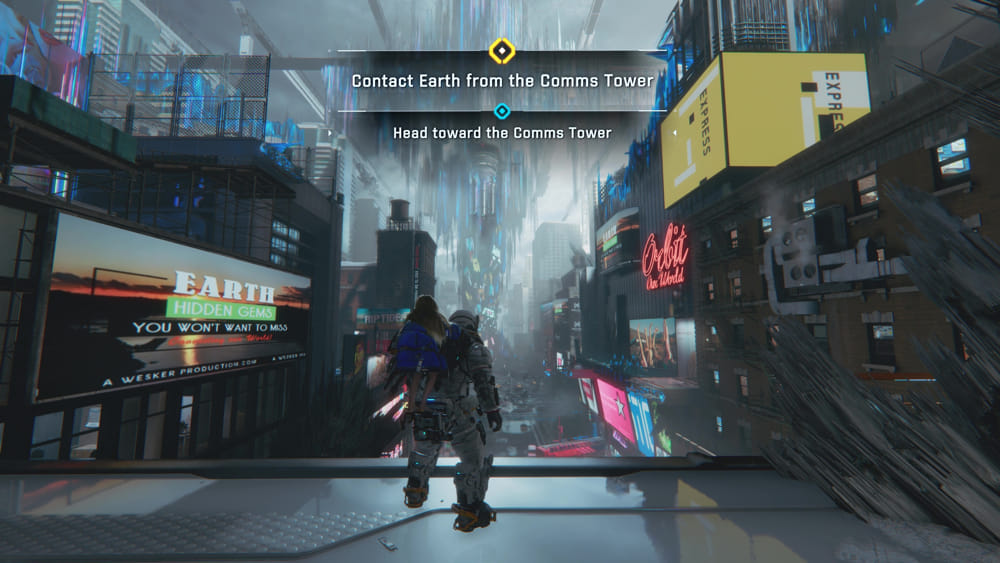 สภาพแวดล้อมก็น่าประทับใจเช่นกัน เมืองสไตล์นิวยอร์กที่ถูกย้ายมาตั้งอยู่บนพื้นผิวดวงจันทร์สร้างความขัดแย้งที่โดดเด่นระหว่างแสงนีออนแบบไซเบอร์พังก์กับภูมิประเทศอันแห้งแล้งของดวงจันทร์ สร้างบรรยากาศที่เป็นเอกลักษณ์แต่ก็แฝงไปด้วยความรู้สึกแบบโลกหลังยุคล่มสลาย