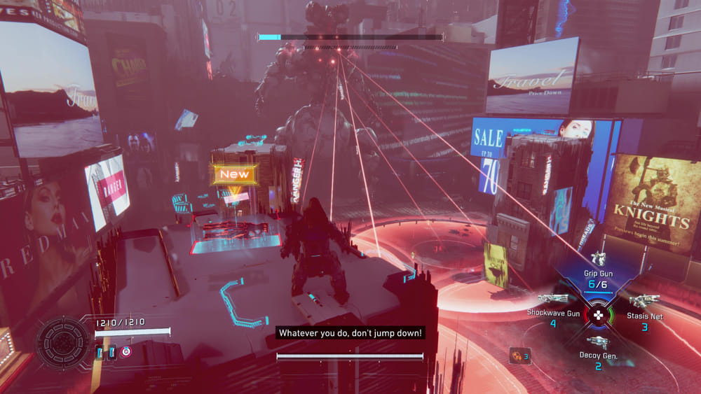 การต่อสู้กับบอสในพรีวิวนี้ก็ให้ความรู้สึกทะเยอทะยานขึ้นมากเช่นกัน ฉากหลังเปลี่ยนจากสถานีอวกาศเป็นเมืองที่ได้แรงบันดาลใจจากนิวยอร์กบนดวงจันทร์ ซึ่งให้ความรู้สึกถึงสเกลที่ยิ่งใหญ่และเร้าใจกว่าเดิม บอสมีหลายเฟสพร้อมการโจมตีที่แตกต่างกันซึ่งต้องการการปรับตัวอยู่ตลอดเวลา ช่วงเวลาที่ตึงเครียดที่สุดเกิดขึ้นเมื่อบอสปล่อยการโจมตีแบบครอบคลุมทั้งพื้นที่ บังคับให้ผู้เล่นต้องปีนขึ้นไปบนโครงสร้างที่ถูกสุ่มสร้างขึ้นและรักษาตำแหน่งไว้จนกว่าการโจมตีจะสิ้นสุดลง