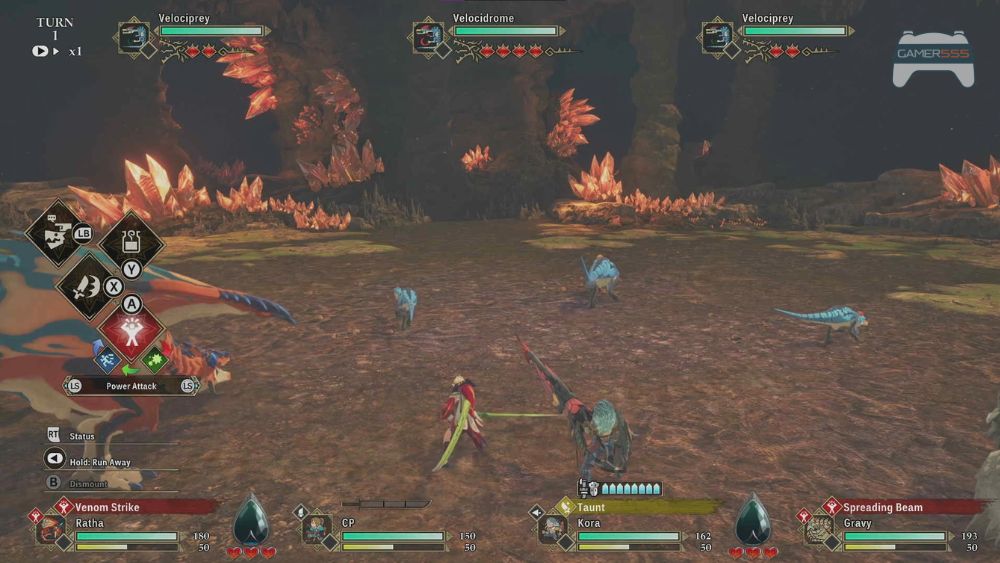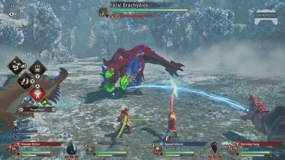 การต่อสู้ใน Monster Hunter Stories 3: Twisted Reflection อิงจากการทดลองเล่นอย่างยาวนานบนเวอร์ชัน PlayStation 5 ให้ความรู้สึกไตร่ตรองและเรียกร้องทักษะมากขึ้น ในขณะที่รากฐานแบบเทิร์นเบส ยังคงคุ้นเคย การต่อสู้ตอนนี้มีโครงสร้างรอบค่าการโจมตีสองค่าที่ผูกติดกับท่าต่อสู้: Attack และ Wyvernfell