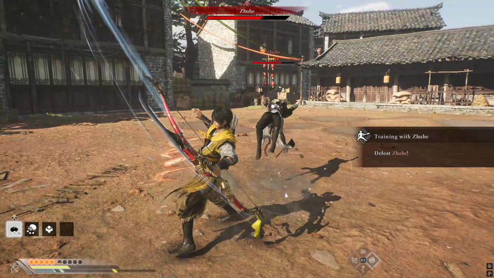 ในการดวลตัวต่อตัว ธนูให้ความรู้สึกทรงพลังอย่างเหลือเชื่อ หลังจากหลบการโจมตีของศัตรู ผู้เล่นสามารถรักษาระยะห่างในขณะที่ยังคงกดดันคู่ต่อสู้ต่อไปได้ Arts ของมันเรียบง่ายแต่ได้ผล โดยกุญแจสำคัญคือการรักษา Vigor เพื่อปล่อยการโจมตีรุนแรงได้อย่างต่อเนื่อง อาวุธนี้สร้างสมดุลที่น่าพึงพอใจระหว่างความคล่องตัว กลยุทธ์ และพลังดิบ