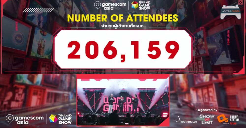 Show No Limit บริษัทผู้จัดงาน gamescom asia x Thailand Game Show ได้ประกาศปิดงาน gamescom asia x Thailand Game Show 2025 ด้วยจำนวนผู้เข้าร่วมทั้งหมด 206,159 คน ทำสถิติจำนวนผู้เข้าร่วมมากที่สุดนับตั้งแต่จัดงานมา