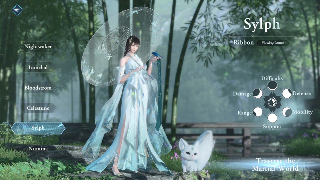 ต่อมาคือ Sylph คลาสที่ล็อกเพศไว้สำหรับผู้หญิงโดยเฉพาะ โดยหลักแล้วทำหน้าที่เป็นซัพพอร์ต เช่นเดียวกับ Celestune ที่คุณต้องรักษาระยะห่างจากศัตรู แต่ Sylph จริงๆ แล้วมีความทนทานเทียบเท่ากับ Bloodstorm ในแง่ของการป้องกัน แม้ว่าคุณจะสามารถใช้มันในการต่อสู้ได้ แต่บทบาทหลักของเธอคือการปกป้องปาร์ตี้ของคุณด้วยการให้การรักษา และทักษะสนับสนุนอื่นๆ เพื่อเพิ่มความเสียหาย เนื่องจากมีสิ่งที่ต้องพิจารณาในการต่อสู้มากกว่าแค่การสนับสนุนปาร์ตี้ของคุณ นี่จึงทำให้เป็นหนึ่งในคลาสที่ยากที่สุดในการฝึกฝนอย่างชัดเจน และประสิทธิภาพของคุณอาจส่งผลกระทบอย่างมากต่อความสำเร็จของการลงดันเจี้ยนและการ raids