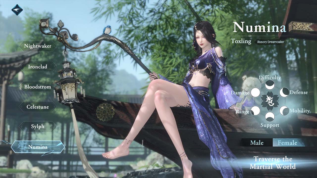 และสุดท้าย Numina คลาสสาย caster ที่เป็นคู่หูของ Celestune แต่เธอมีชุดสกิล ที่เป็นเอกลักษณ์ รวมถึงความสามารถในการเติมเต็มบทบาทของซัมมอนเนอร์ การหมุนเวียนคลาสนี้อาจให้ความรู้สึกที่ค่อนข้างซับซ้อน โดยเฉพาะอย่างยิ่งเมื่อคุณเข้าถึงทักษะได้มากขึ้น ดังนั้นเราจึงไม่แนะนำสำหรับผู้เริ่มต้น โดยเฉพาะผู้ที่ไม่คุ้นเคยกับเกม MMORPG อย่างไรก็ตาม สำหรับผู้ที่มุ่งมั่นกับมัน Numina สามารถเป็นคลาสที่อันตรายได้ โดยเฉพาะอย่างยิ่งด้วยค่าสถานะความเสียหายสูงสุดในระยะไกลและค่าสถานะโดยรวมที่สมดุลมากเมื่อเทียบกับคลาสอื่นๆ ทั้งหมด