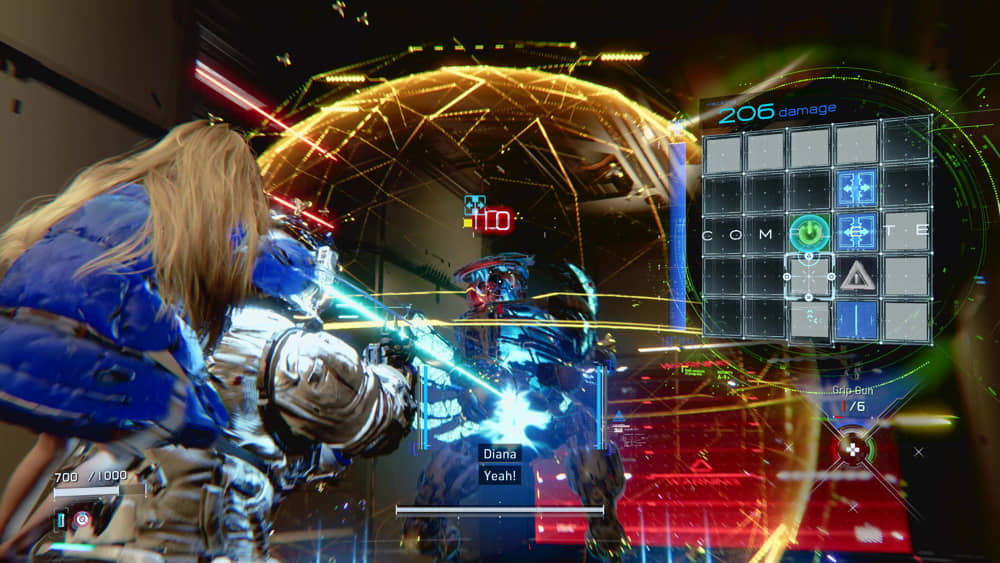 ข้อดีคือ หากการแฮ็กของคุณถูกขัดจังหวะ ความคืบหน้าของคุณจะไม่หายไป ดังนั้นคุณสามารถทำต่อจากจุดที่ค้างไว้ได้ นอกจากนี้ แต่ละการต่อสู้ยังเติมแถบพิเศษอีกด้วย เมื่อมันเต็ม Diana จะเข้ามาแทรกแซงด้วยการแฮ็กขนาดใหญ่ที่ทำให้ศัตรูเป็นอัมพาต ณ จุดนั้น คุณสามารถสร้างความเสียหายมหาศาลได้ และยังมีแอนิเมชันการเผด็จศึกสุดเท่ที่ตัวละครหลักกระโดดขึ้นไปบนตัวศัตรูและวางระเบิด การระเบิดนั้นเป็นการจบการต่อสู้ได้อย่างมีสไตล์