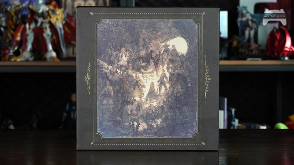 เริ่มต้นด้วยตัวกล่องสะสมเอง ภายนอกถูกหุ้มด้วยกระดาษคุณภาพสูงที่มีพื้นผิวด้าน ซึ่งให้ความรู้สึกพรีเมียมเมื่อสัมผัส ด้านหน้า ภาพประกอบตัวละครที่มีเสน่ห์โดย Akihiko Yoshida โดดเด่นอยู่บนลวดลายแผนที่โลก Ivalice ที่หรูหราและมีรายละเอียด